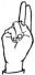 На ћирилици написано ПЕРИША ДИМИТРИЈЕВИЋ састоји се из 18 слова [?]. Исписано ћириличном једноручном азбуком за глувонеме: